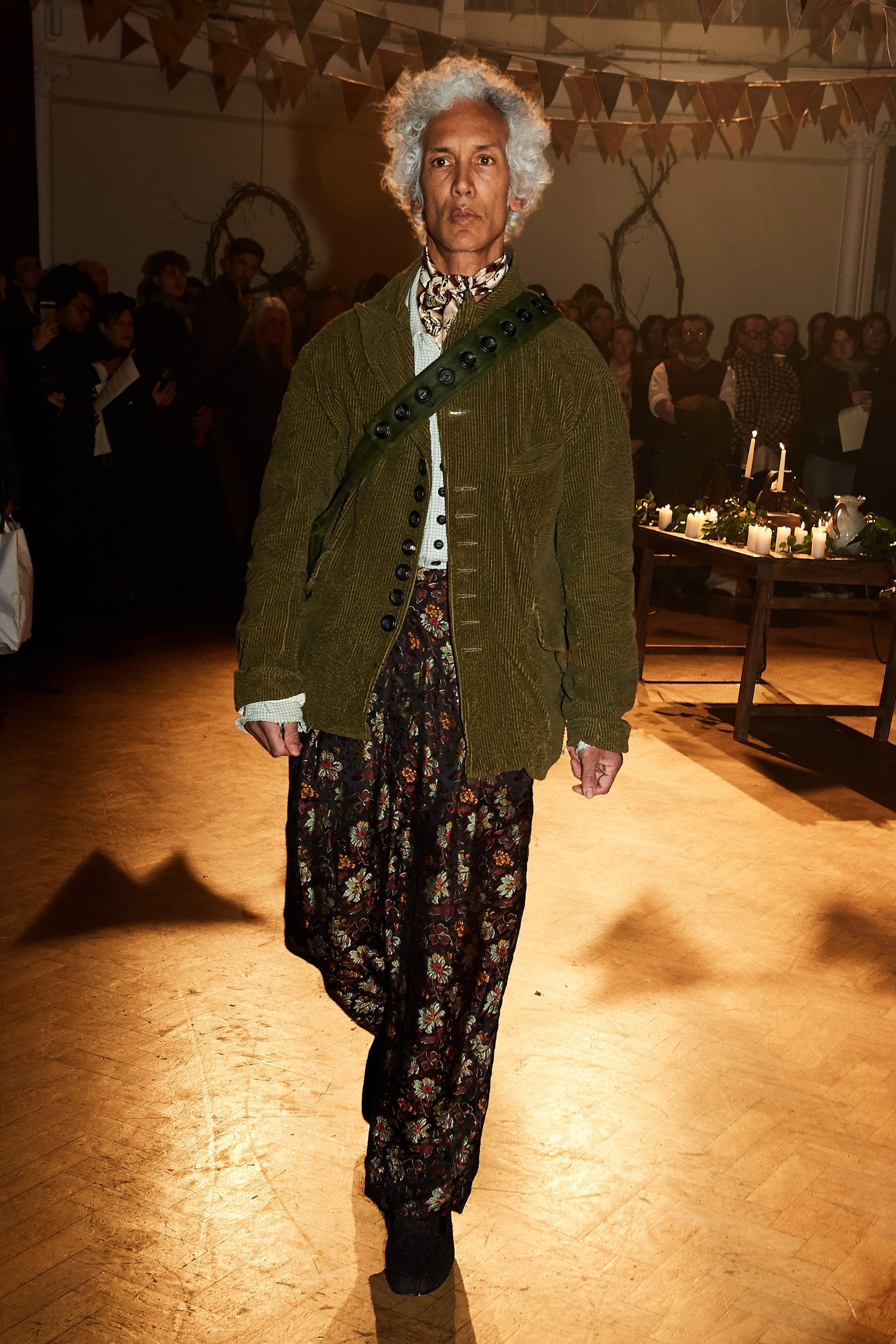 ელეგანტურ, კომფორტულად სატარებელ და „ფლორალური ელემენტის ხარჯზე“ არამოჭარბებული მასკულინურობის მატარებელ ტანისამოსს გვთავაზობს John Alexander Skelton-ი. მრჩება შთაბეჭდილება, რომ დიზაინერი კომფროტს საკუთარი კულტურის ფესვებში, ინგლისში ეძებს და პოულობს კიდეც.