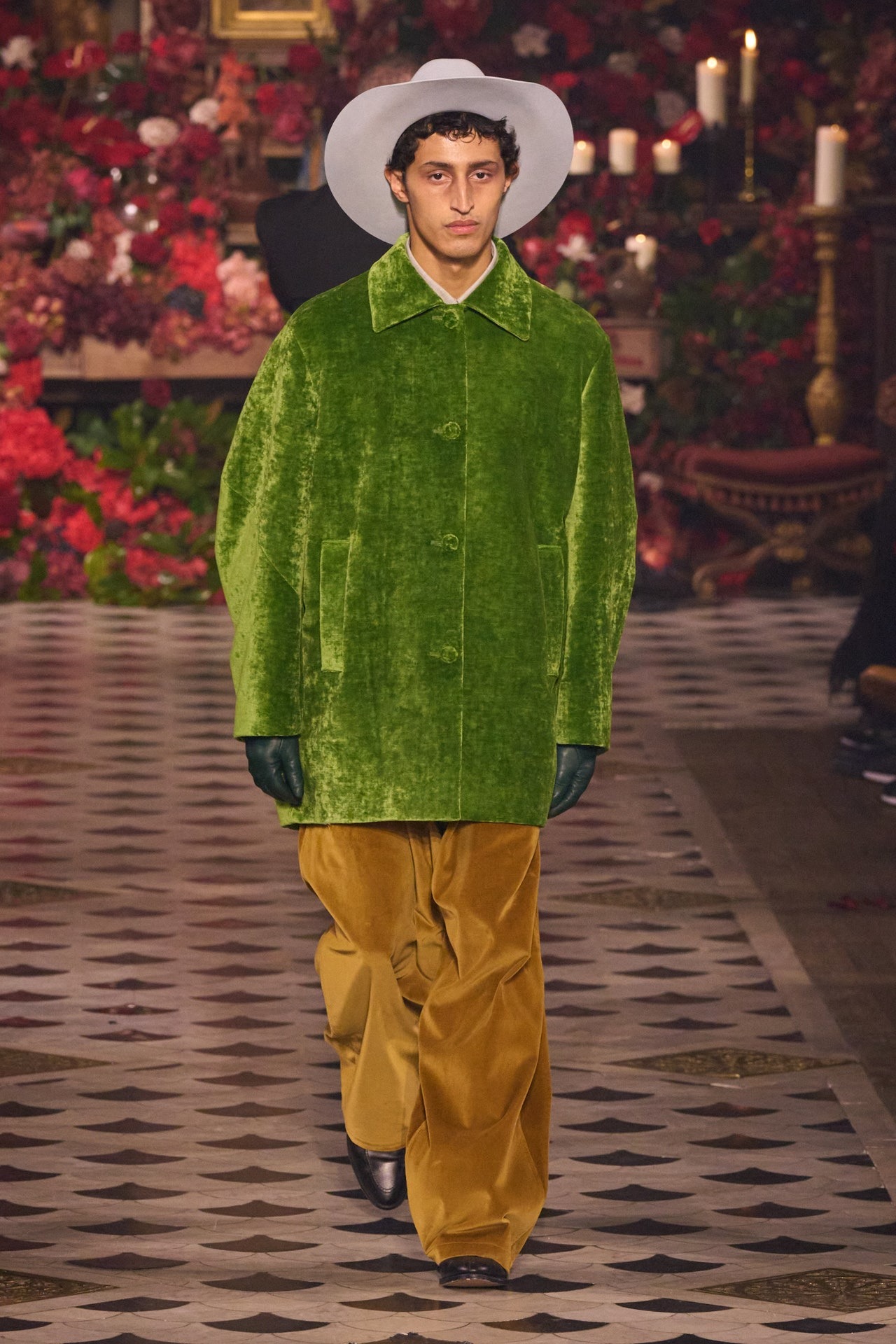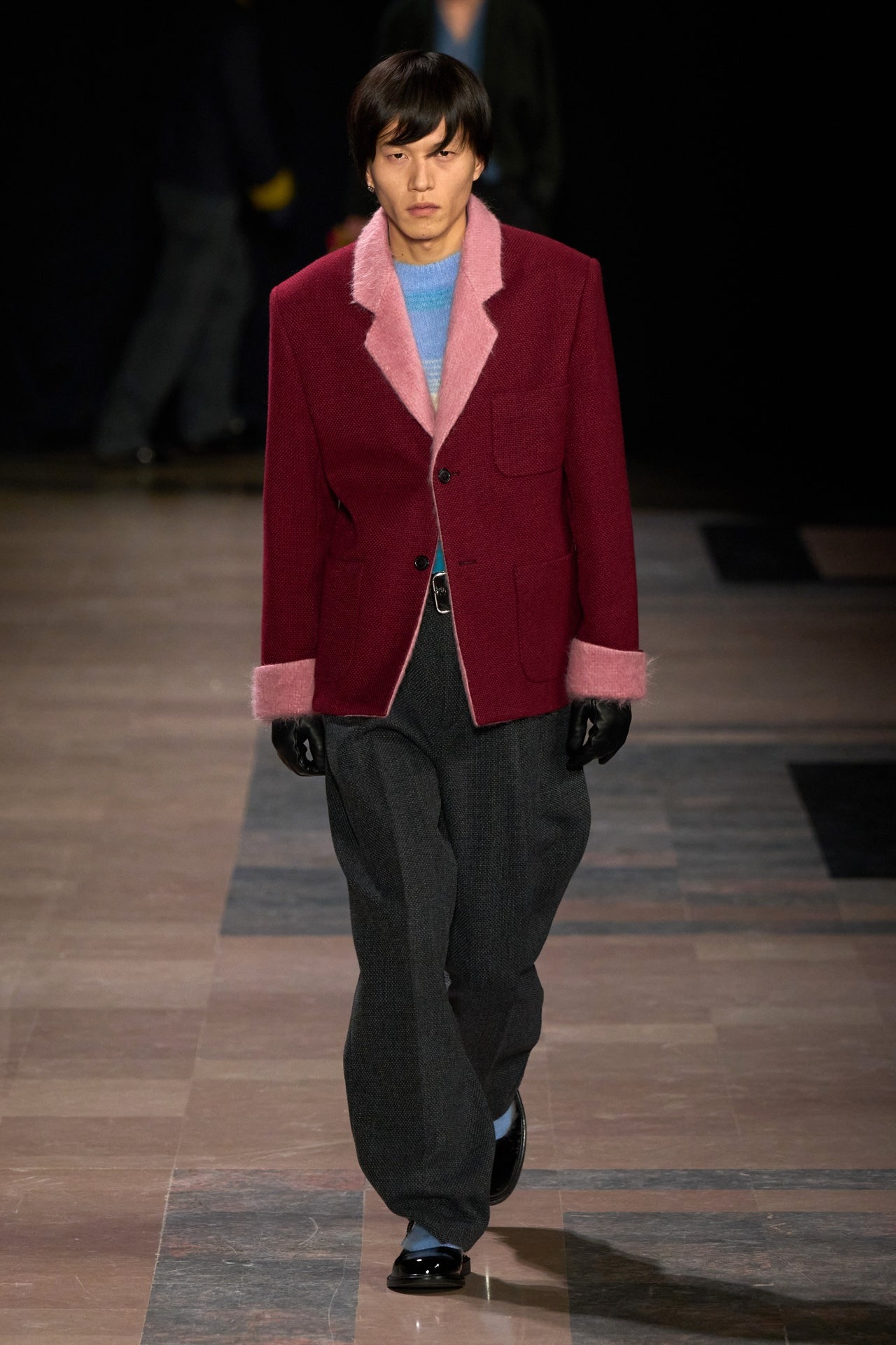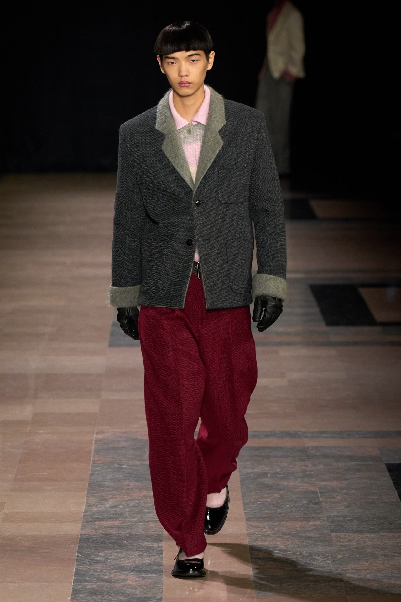 ღია ვარდისფერი ასევე აქტუალური იყო Dior-ის ჩვენებაზეც. მოდის სახლის ხელწერა “H-Line” სილუეტებით მაღალი მოდიდის არქივებიდან, მამაკაცის 2025 წლის შემოდგომა/ზამთრის კოლექციაში პოულობს ადგილს.