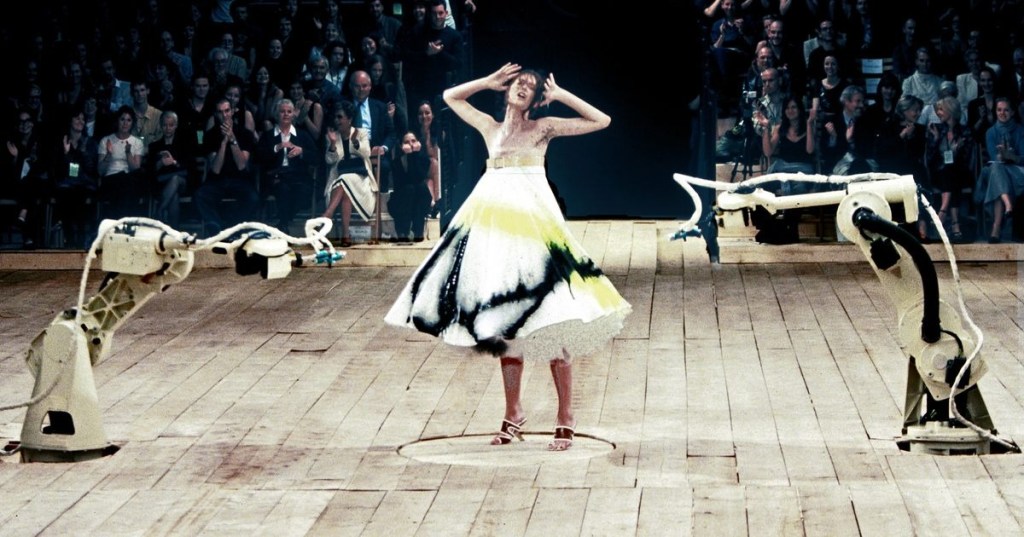 მაკქუინის ჩვენებათა უმრავლესობა შეიძლება რევოლუციურად და ლეგენდარულად შეფასდეს, თუმცა მოდის ექსპერტები თანხმდებიან, რომ ერთ-ერთი გარდამტეხი მომენტი პოდიუმზე, რამაც ტექნოლოგიური წინსვლა, ფუტურიზმი და მოდა ერთმანეთს საბოლოოდ დაუკავშირა, სწორედ მაკქუინის შოუზე 1999 წლის კოლექციის ჩვენებისას, Shalom Harlow-ს მონაწილეობითა და რობოტების დახმარებით შექმნილი დაუვიწყარი ქორეოგრაფიულ-ტრანსფორმაციული ნომერია. აუდიტორიის თვალწინ მოდელმა თეატრალური ოსტატობით შეძლო ნათლად ეჩვენებინა მოდის მომავალი და გარღვეული ლიმიტაციები.