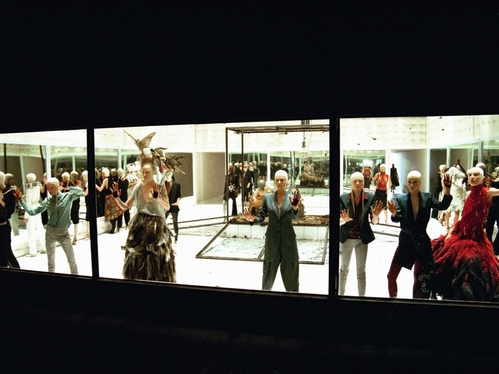 2) Alexander McQueen, “Voss”, 2001 წლის გაზაფხული-ზაფხულის შოუს (რომელიც ფსიქიატრიულ ჰოსპიტალში გაიმართა) ფინალი, როცა მინის ყუთი საბოლოოდ იმსხვრევა და შიგნით მოთავსებული მოდელი სრულიად შიშველი წარსდგება აუდიტორიის წინაშე. სიგიჟის ზღვარზე მყოფი პერსონის სურათი, სოციალური პრობლემების სიმძაფრე, საზოგადოებირვი წნეხი და “გონებრივი თამაშები” ასე “ვულგარულად” და ამავდროულად საინტერესოდ ჯერ არც-ერთ დიზაინერს არ ჰქონდა წარმოჩენილი, რაც ლი მაკქუინმა შეძლო და ოქროს ასოებით ამოტიფრა საკუთარი სახელი მოდის ისტორიის სახელმძღვანელოებში.