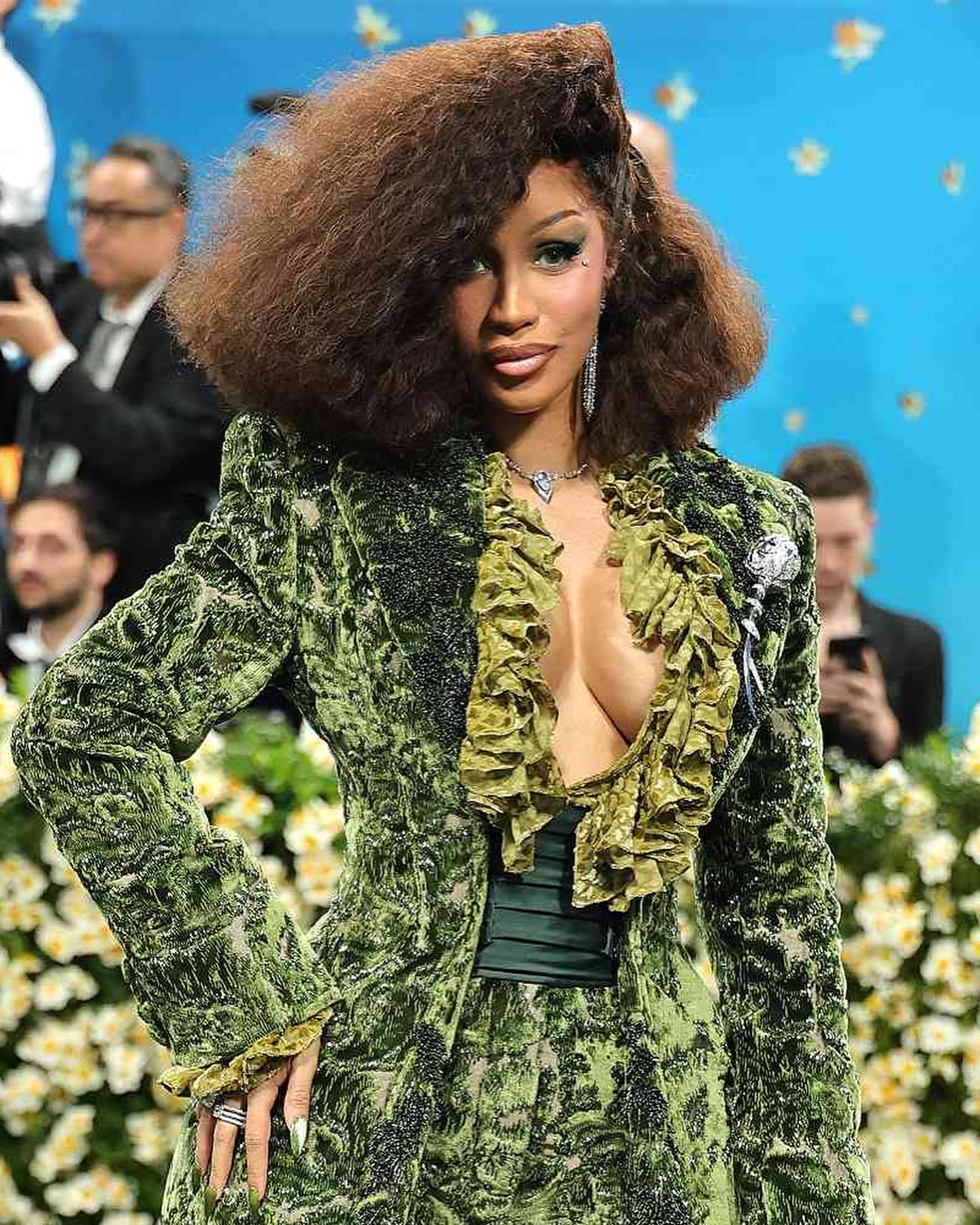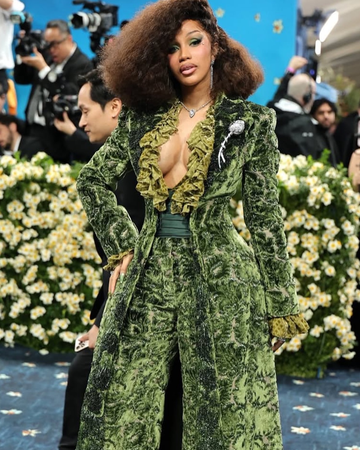 ყურადღების ეპიცენტრში ასევე მოხვდნენ არტისტები Cardi B, რომელიც Burberry -ის მწვანე ხავერდის კოსტიუმში წარსდგა, და Bad Bunny, რომელმაც Prada-ს მარტივი და ელეგანტური ტანისამოსი და აქსესუარი, ჩანთა, მოირგო.