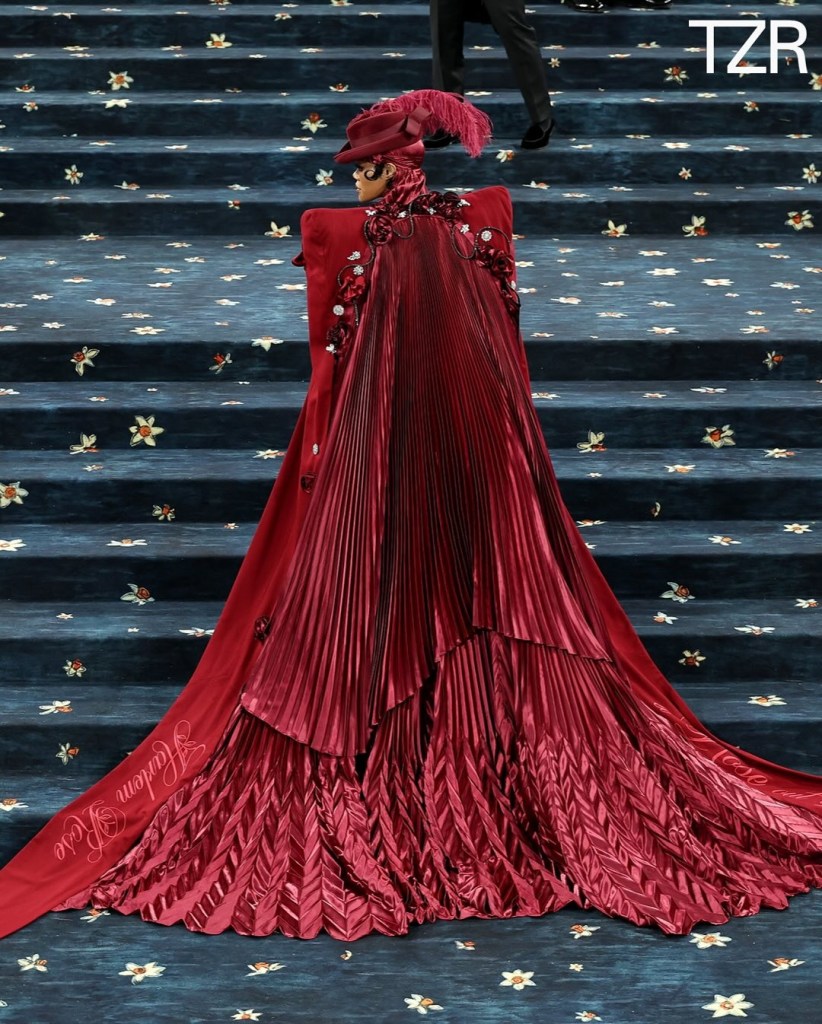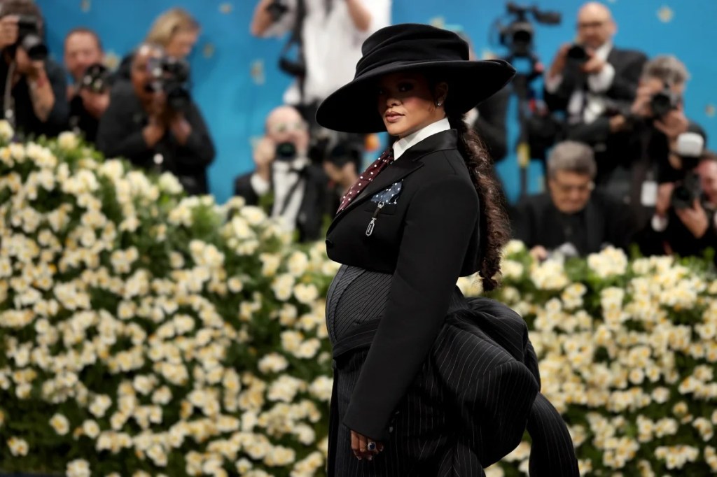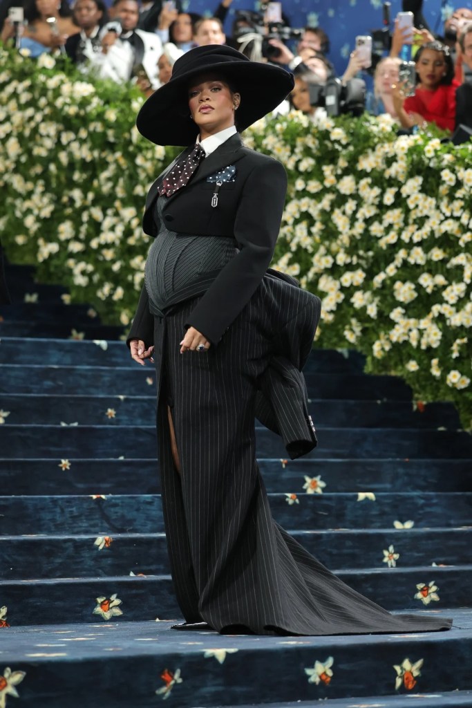 წელს ყველა გააოცა ღონისძიებაზე Rihanna-ს გამოჩენამ, რომელიც, როგორც აღმოჩნდა, რიგით მესამე შვილს ელოდება. მომღერალი Marc Jacobs-ის “ლუქით” წარსდგა ხალიჩაზე, რომელიც სპეციალურად მისთვის შეიქმნა.